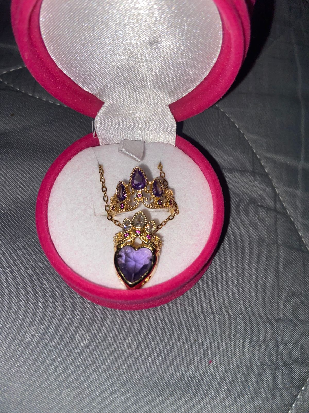 👑 Incluye collar, anillo y caja corona rosa