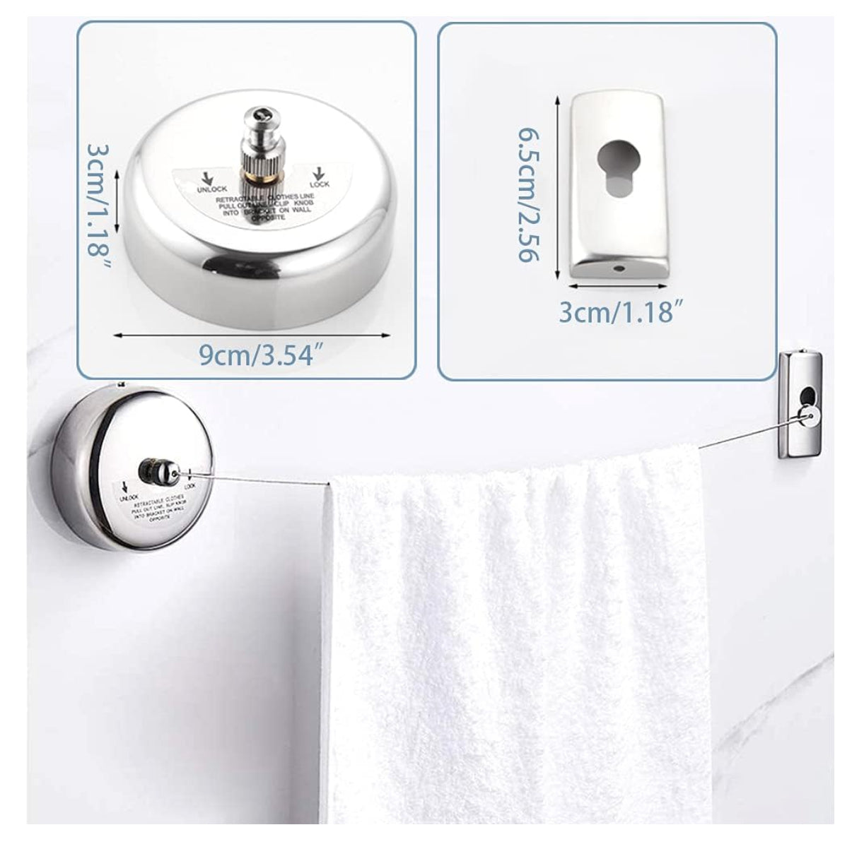 Este tendedero con un diseño de cuerda retráctil de 2,5 metros le permite elegir libremente la distancia de colgar según la cantidad de ropa.